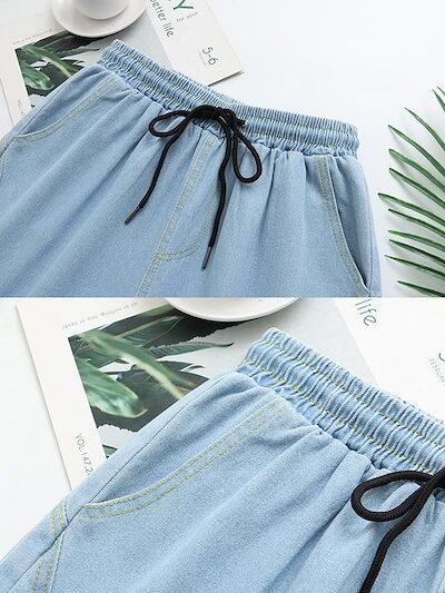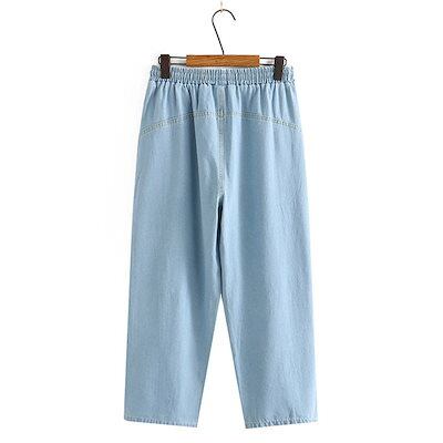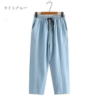 ワイドパンツ デニム レディース デニムパンツ ワイド きれいめ パンツ ボトムス 大きいサイズ ウエストゴム 紐付き ロングパンツ 春 夏 薄手 無地 ジーンズ ゆったり 体型カバー カジュアル