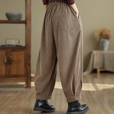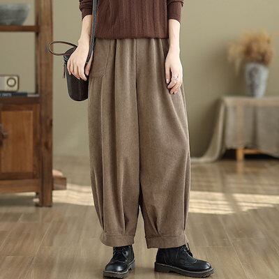 ワイドパンツ レディース バルーンパンツ コーデュロイ 秋冬 サーカスパンツ 春 ワイド ボトムス パンツ ハロンパンツ 大きいサイズ コクーン ウエストゴム ロングパンツ サルエルパンツ ポケット付