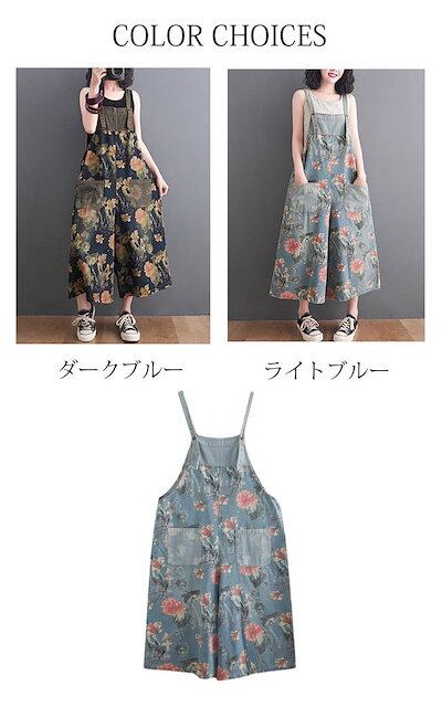 プリットサロペット パンツ デニム レディース オールインワン ワイドパンツ 春 夏 ボトムス 大きいサイズ デニムサロペット きれいめ サロペットパンツ オーバーオール デニムパンツ ワイド 花柄 プリット