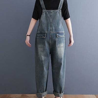 サロペット パンツ レディース ボトムス デニムパンツ デニムサロペット オールインワン 春 サロペットパンツ 秋 ロングパンツ デニム オーバーオール ポケット付き ワイドパンツ ズボン ロング丈