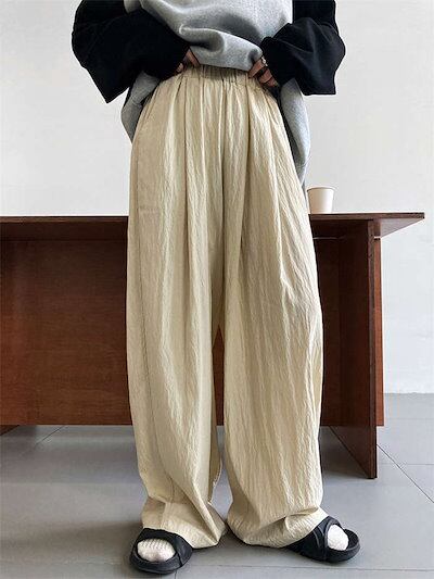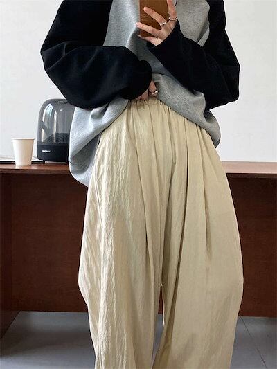 ワイドパンツ レディース 春 秋 ロング丈 ルーズ ズボン ボトムス パンツ カーゴパンツ カジュアル ゆるっと ゆったり おしゃれ かわいい シンプル 無地 流行 薄手 上品 トレンド ストリート