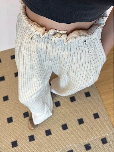 ワイドパンツ レディース 春 夏 秋 ストライプ パンツ 綿麻混 ボトムス 涼しい リネン パンツ ハイウエスト ワイド スラックス 美シルエット ハイウエスト 落ち感 着?せ 着心地 柔らかい リゾ