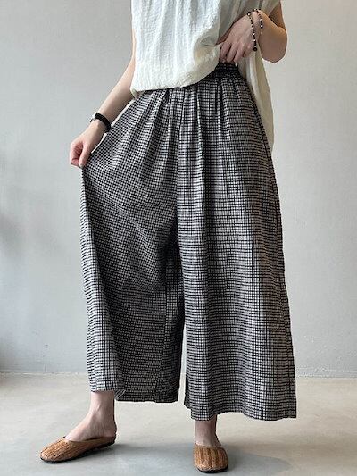 ワイドパンツ レディース チェック柄 秋 春 夏 スカンツ ロング丈 体型カバー おしゃれ ゆったり カジュアル ナチュラル 着痩せ ボトムス 春物 春 夏 秋 ゆる 大きいサイズ 薄手 ワイドシルエ