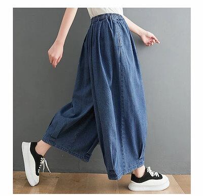 デニムワイドパンツ レディース バルーンパンツ デニム コクーンパンツ デニム ボトムス パンツ ジーンズ 大人カジュアル 春夏 ナチュラル 森ガール ズボン ウエストゴム 大きいサイズ ゆったり
