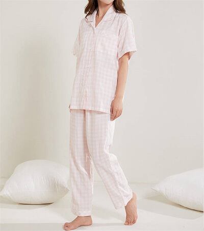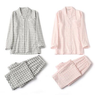 チェック ガーゼ パジャマ レディース ダブルガーゼ ドット ルームウェア 春 夏 秋 冬 長袖 半袖 ロングパンツ 部屋着 セットアップ 2点セット 寝間着 寝巻き 上下セット 前開き 大きいサイズ
