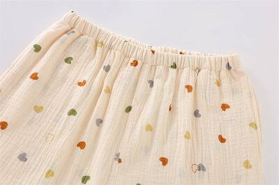 ガーゼ パジャマ レディース ルームウェア パンツ 春 秋 ガーゼコットン vネック 総柄 ハート柄 春秋 長袖 ダブルガーゼ 2重ガーゼ 綿 部屋着 セットアップ 2点セット ナイト 寝間着 寝巻き