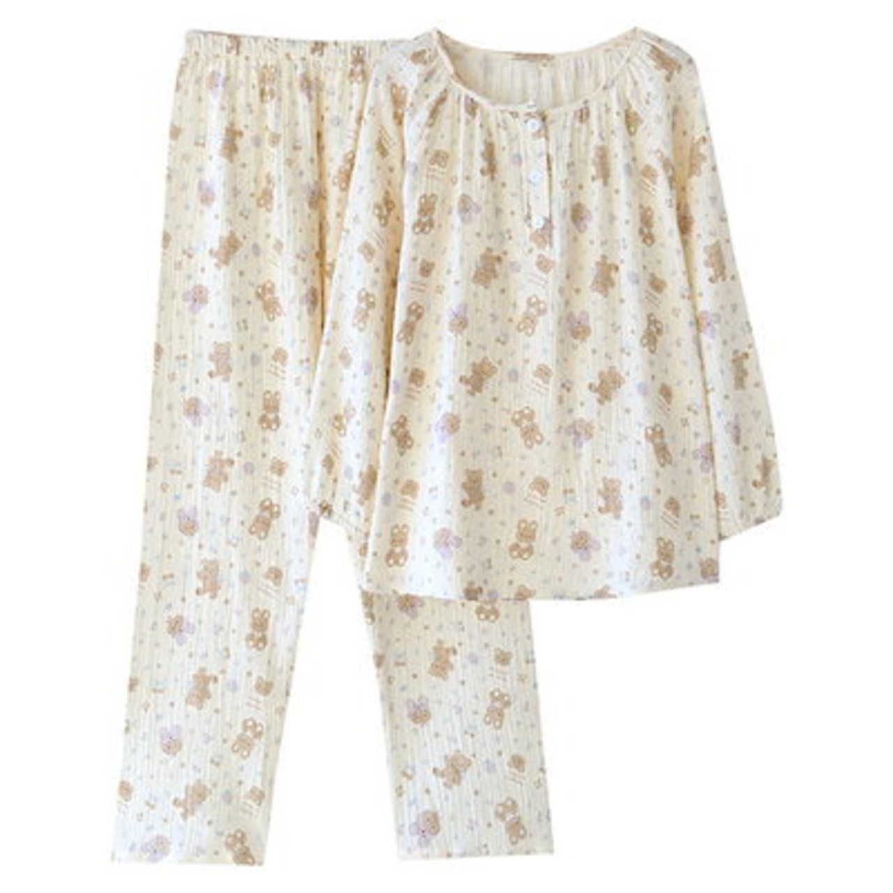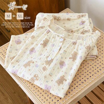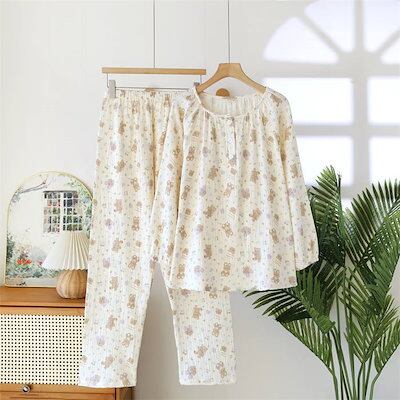 ガーゼパジャマ レディース ルームウェア パンツ 総柄 可愛い 春 秋 ガーゼコットン 春秋 長袖 ダブルガーゼ 2重ガーゼ 綿 部屋着 セットアップ 2点セット ナイト 綿 寝間着 寝巻き 上下セッ