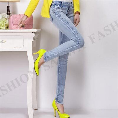 [QINGCE]スキニーパンツ デニムパンツ レディース ストレッチ ダメージ キラキラ スキニージーンズ ロング丈 美脚 ボトムス スリム お洒落 可愛い