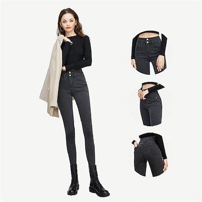 デニム スキニーパンツ レディース 裏起毛 秋冬 ストレッチ あったかい ハイウエスト ジーンズ 細身 ボトムス カジュアル ジョギング ヨガ 散歩