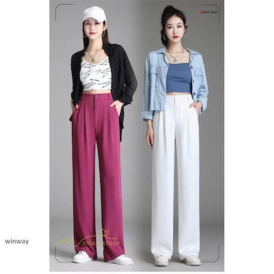 ワイドパンツ レディース パンツ ボトムス ズボン ハイウエストパンツ 体型カバー ストレート ロングパンツ 春夏 美脚 お洒落 カジュアル ゆったり