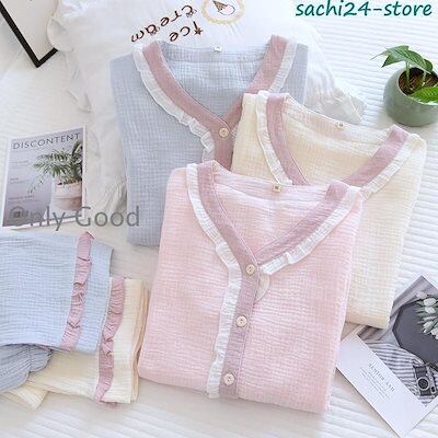 パジャマ ルームウェア レディース ダブルガーゼ 前開き 長袖 半袖 ロングパンツ 上下セット 吸汗通気 春 夏 秋 部屋着 寝巻き 入院 マタニティ
