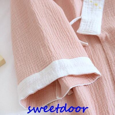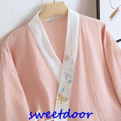 パジャマ ナイトウェア ルームウェア レディース Vネック 甚平 ダブルガーゼ 綿 長袖 ロングパンツ 和風 2重ガーゼ 部屋着 春 夏 秋 冬 女性用 入院 無地