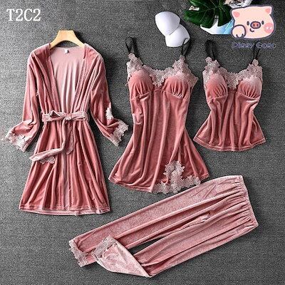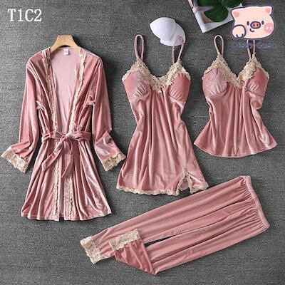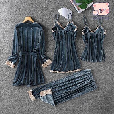 パジャマ 寝巻き 在宅服 ルームウェア レディース 4点セット 女性用 ネグリジェ パンツ レース 部屋着 カジュアル 着こなせ おしゃれ 秋冬 春