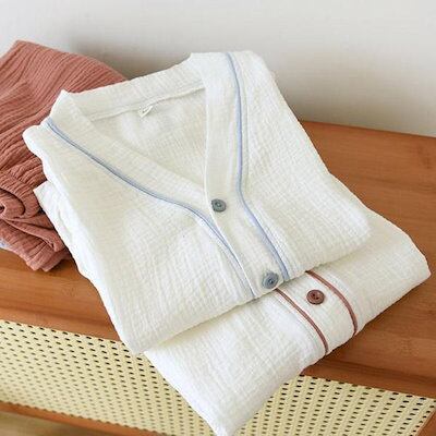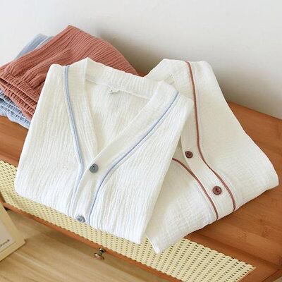 パジャマ レディース 綿100% ダブルガーゼ 2重ガーゼ 2点セット 長袖 ロングパンツ ルームウェア 部屋着 寝巻き Vネック 夏用 秋用 春用 女性用 入院