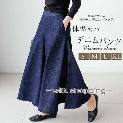 デニムパンツ レディース ワイド パンツ ガチョウパンツ ゆったり 大きいサイズ ガウチョ デニム ボトムス ボリューム