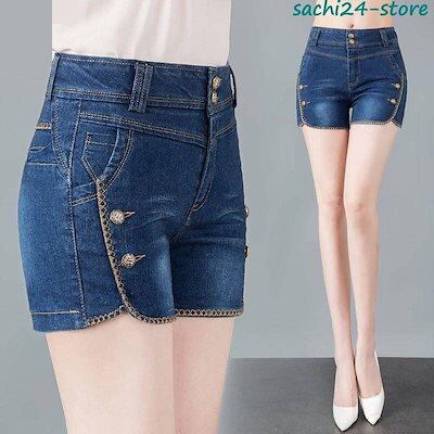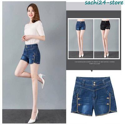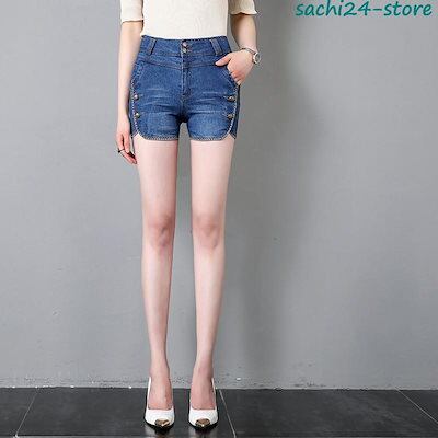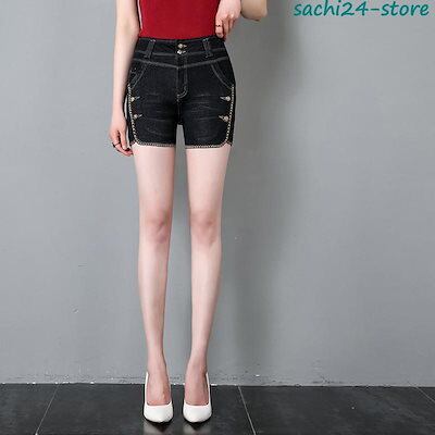 短パン ジーンズ レディース デニム ショート ショーパン スキニー 夏 ホットパンツ ハイウエスト ロープ カジュアル ボトムス 美脚 レギンス