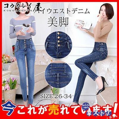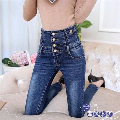 【】 デニムパンツ レディース ハイウエスト ロング丈 ジーパン ジーンズ スリム スキニー パンツ 細身 美脚 伸縮 着痩せ 定番 おしゃれ