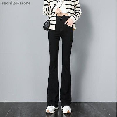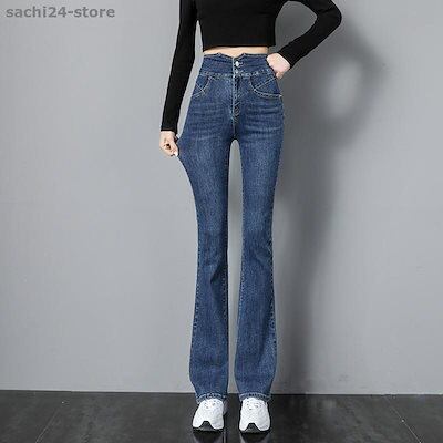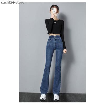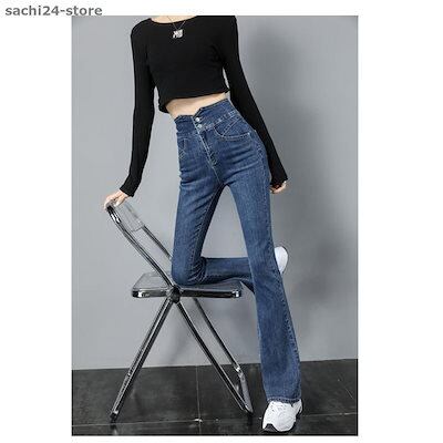 春夏新作 フレアパンツ デニム レディース ロング丈 スキニー ハイウエスト ストレッチ ボトムス ジーンズ 美脚 オフィス 通勤 OL