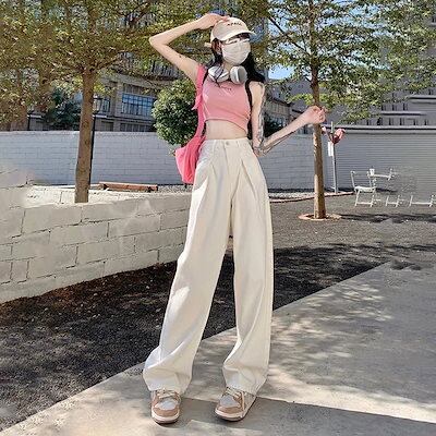 スラックスパンツレトロ ギャザー 感 ハイウェスト ドレープ感 モップパンツ ワイドパンツ ストレートパンツ ジーンズ レディース コーディネート ニューデザイン2047