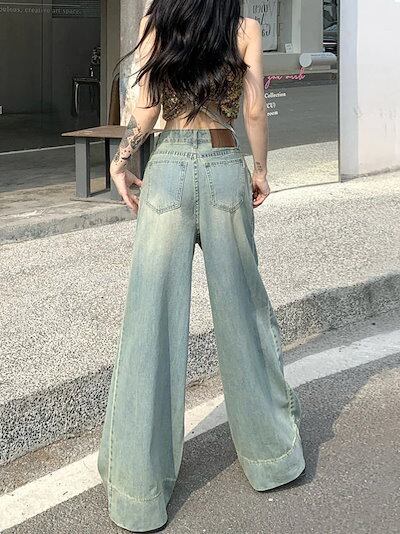 大きいサイズ スリム ジーンズ レディース ルーズワイドレッグパンツ ストレートパンツ レディース