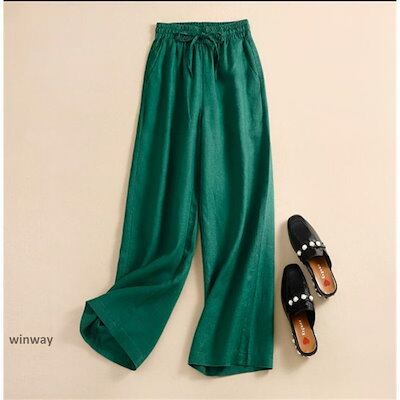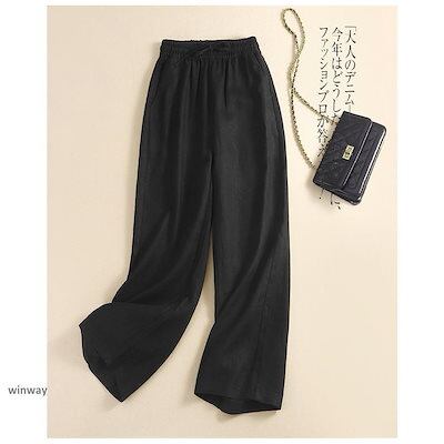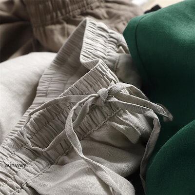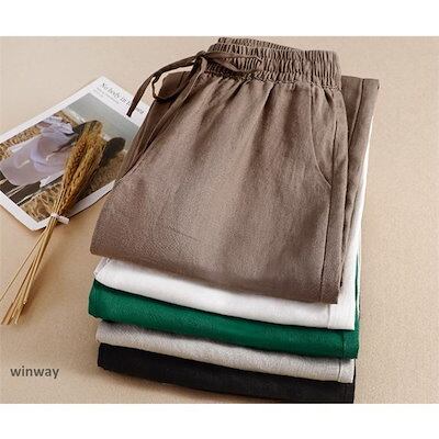 ワイドパンツ パンツ レディース 40代 春夏 綿麻 ボトムス ロングパンツ ガウチョパンツ ウエストゴム 美脚 ポケット付き 無地 着痩せ ゆったり 楽ちん