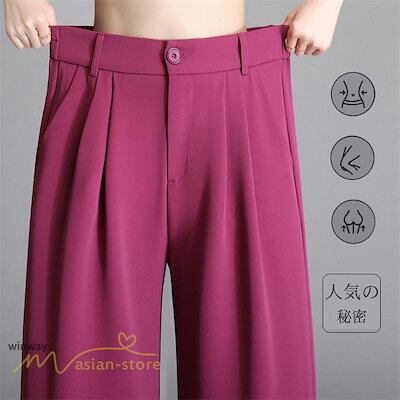 ワイドパンツ レディース パンツ ボトムス ズボン ハイウエストパンツ 体型カバー ストレート ロングパンツ 春夏 美脚 お洒落 カジュアル ゆったり