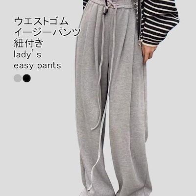 イージーパンツ レディース ロングパンツ 無地 紐付き ポケット ハイウエスト ウエストゴム ゆったり シンプル 美脚 快適 春夏秋