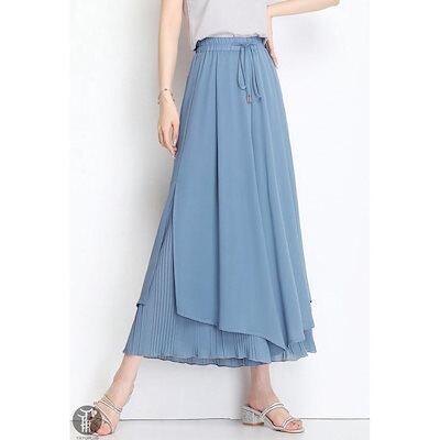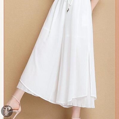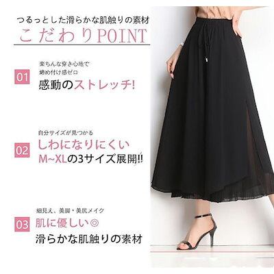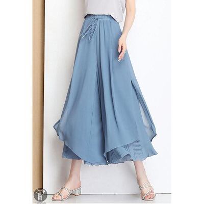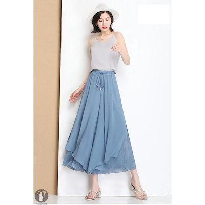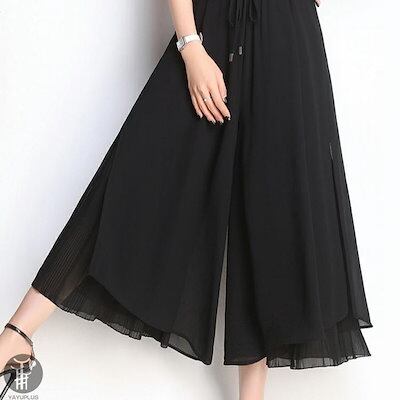 ガウチョパンツ 裾プリーツ 切り替え ワイドパンツ 春 夏 秋 レディース シフォン フレアパンツ スカーチョ ゆったり