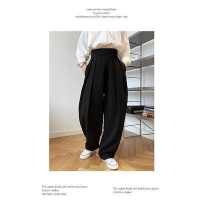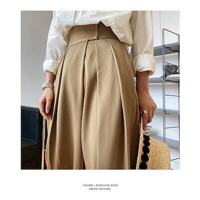タックワイドパンツ レディース ボトムス 秋 冬 春 イージーパンツ ワイドパンツ アシンメトリー スラックス 美シルエット マジックテープ