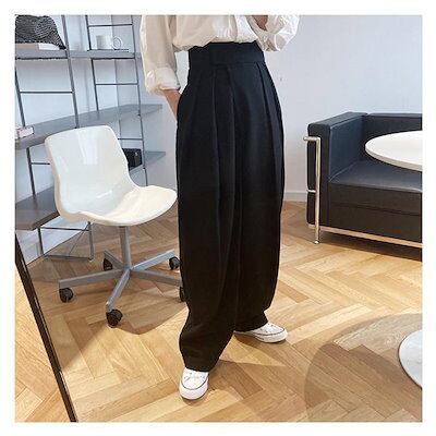 タックワイドパンツ 春 夏 秋 レディース ボトムス イージーパンツ ワイドパンツ アシンメトリー スラックス 美シルエット マジックテープ