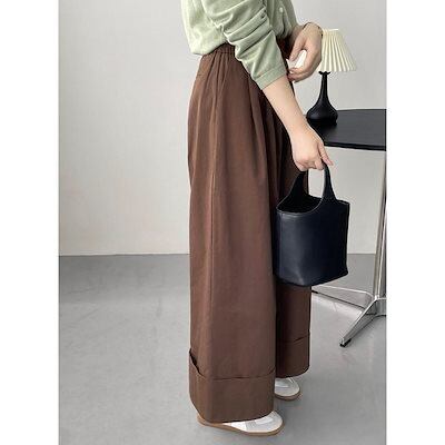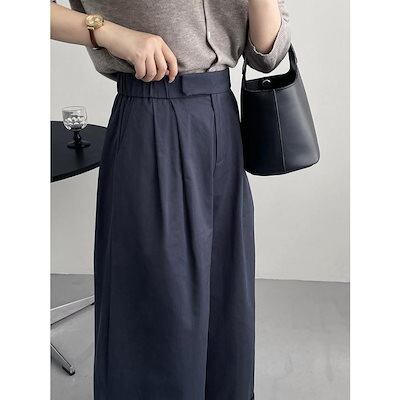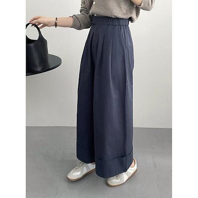ワイドパンツ レディース パンツ 秋 春 ウエストゴム ゆったり ロング丈 ハイウエスト ボトムス シンプル ズボン