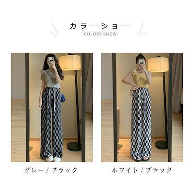 ワイドパンツ 春 夏 秋 レディース チェック柄 イージーパンツ 薄手 夏 サマーパンツ ゆったり 体型カバー バギーパンツ ウエストゴム カジュアルパンツ