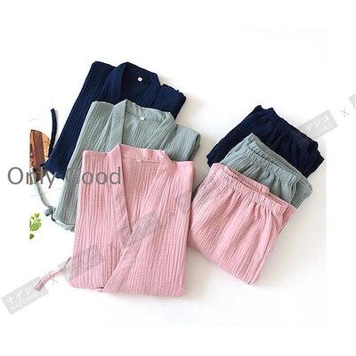 パジャマ 春夏 レディース パジャマ メンズ 七分袖 長ズボン 甚平風パジャマ お揃い可 作務衣 レディース 甚平 メンズ 前開き 浴衣