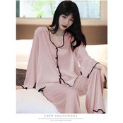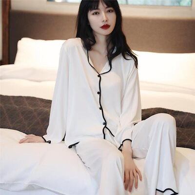 パジャマ レディース ルームウェア 長袖 長ズボン 冷感素材 シルク調 上下セット 薄手 ナイトウェア シンプル 春夏 部屋着 寝間着 涼しい 韓国風