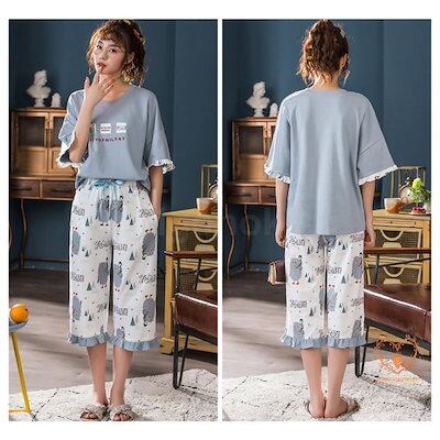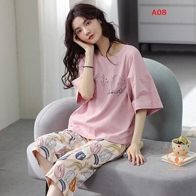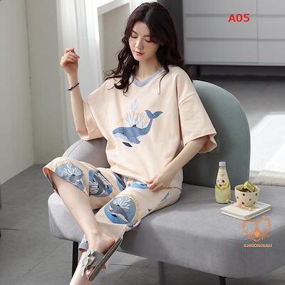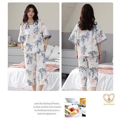 パジャマ レディース 上下セット ルームウェア 花柄 前開き 半袖 七分丈ズボン 2点セット ナイトウェア 部屋着 寝間着 ゆったり 春 夏