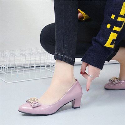 パンプス 靴 ヒール ポインテッドトゥ ローヒール 痛くない 歩きやすい リボン オフィス フォーマル 可愛い 脱げない 卒業式 5cm 7cm