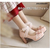 ロリータ靴 パンプス フォーマル靴 靴 ハロウィン コスプレ ヒール 厚底 フォーマル ダンス メイド リボン 美脚 ハロウィンコスム コスプレ衣装