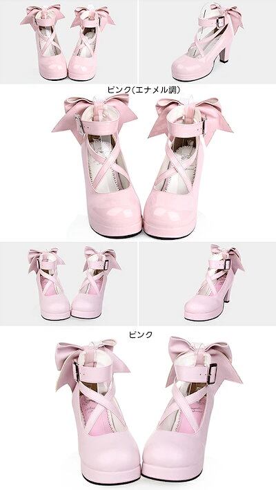 ロリータ靴 リボン シンプル定番ロリータパンプス ヒール6.5cm ロリータ 靴 ハートヒールパンプス ストリート ロリータジーンズ ストラップパンプス お嬢様 シューズ 女の子靴 シューズ 女の子靴