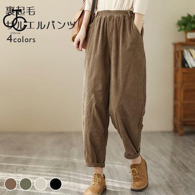 裏起毛パンツ レディース サルエルパンツ 冬 コーデュロイ ムートンパンツ 暖かい 長ズボン 裏起毛サルエルパンツ お洒落 体型カバー ボトムス30%までに制限