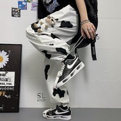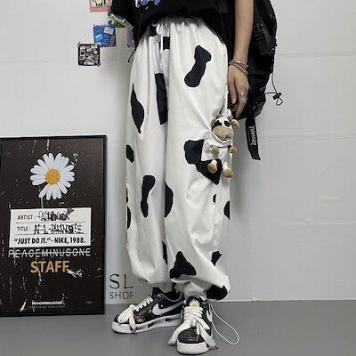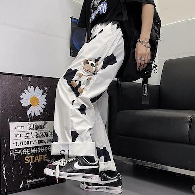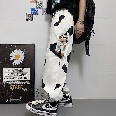 パンツ レディース メンズ ワイドパンツ 乳牛柄 ぬいぐるみ 白パンツ おしゃれ ウエストゴム ズボ