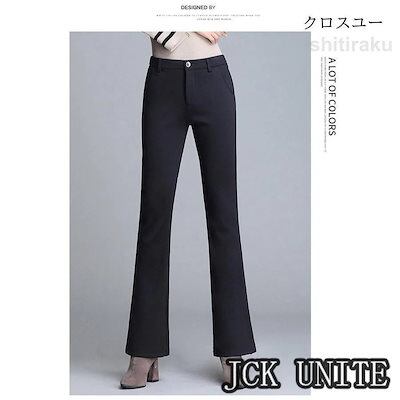 [cos衣料]ビジネススーツパンツ レディース スーツパンツ 裏起毛 ストレートパンツ ベルボトム 裏ボア フレアパンツ 体型カバー オフィス パンツ L 通勤 ストレッチ