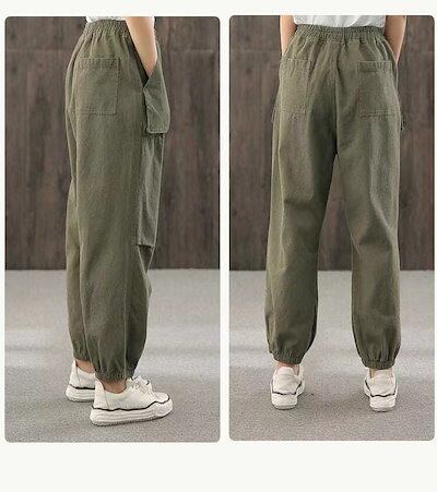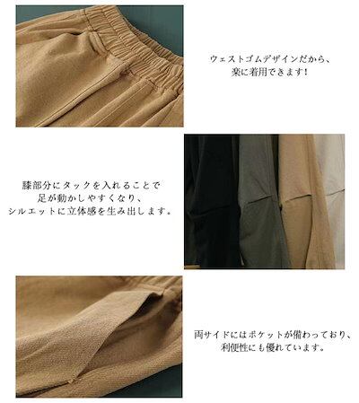男女兼用 バルーンパンツ ボトムス クール チノパンツ お洒落 ズボン レディース 作業風 ビッグポケット 女性用 春夏 ゆったり カジュアル ゴム 大きいサイズ 綿混 膝タック ロング セミワイド