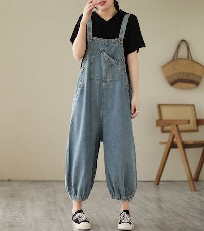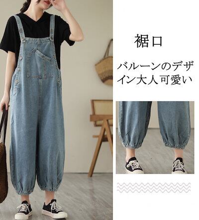 デニムサロペット ビングシルエット オーバオール ロング丈 ボトムス バルーンパンツ オールインワン レディース サルエル サロペット ゆったり デニム 無地 大きいサイズ トップス ワイドパンツ