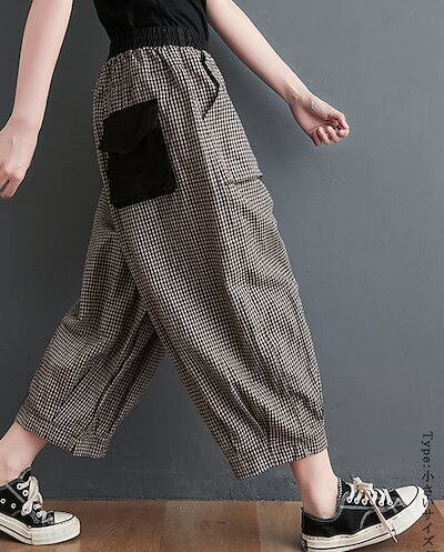 部屋着 コクーン 柄 バルーン レディース サルエルパンツ 低身長 サーカスパンツ 大きいサイズ 速乾 おしゃれ ゆったり チェックパンツ 体型カバー イージーパンツ 夏 きれいめ 七分丈 ゴム パン