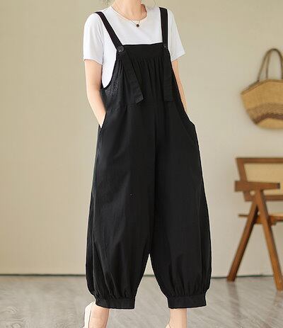 サロペット サロペットパンツ パンツ ゆったり サルエルパンツ ボトムス 丸み レディース 体型カバー 綿麻風 アンクルパンツ 9分丈 大きいサイズ バルーンパンツ 作業着 オーバーオール バルーンシ