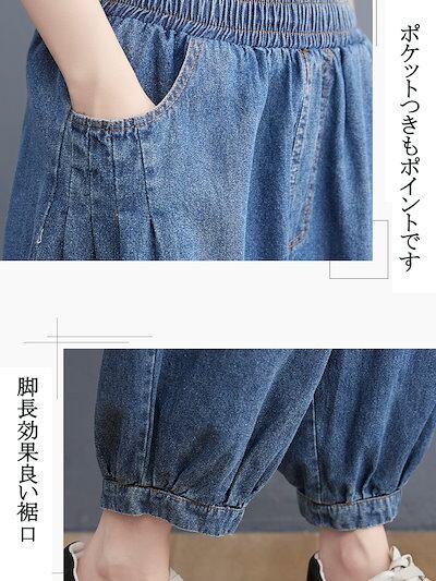 ポケット ボトムス デニム デニム レディース ロングパンツ ワイド オシャレ サルエルパンツ バルーンパンツ 着痩せ パンツ ワイドパンツ 春 夏 体型カバー ゆったり バルーン デニムパンツ ウェ