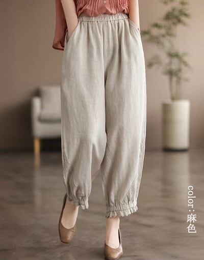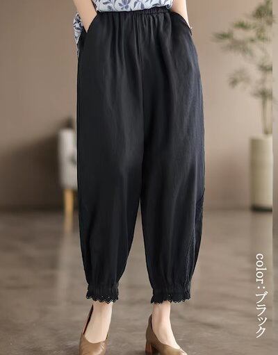 麻 ポケット 綿 テーパードパンツ 春 レディース ナチュラル 夏 ポケット ゆったり 無地 ボトムス バルーンパンツ 体型カバー 大人 カジュアル 春夏 9分丈 綿麻風 ウェストゴム サルエルパンツ