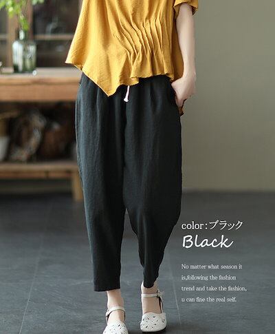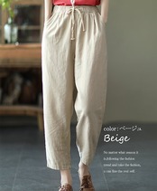 体型カバー 綿麻調 通気性 イージーパンツ ボトムス ウェスト総ゴム 着やすい テーパード テーパードパンツ アンクルパンツ カジュアル レディース 九分丈 シンプル 調整可 紐付き ゆるめ 9分丈