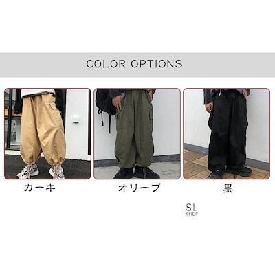 パンツ レディース メンズ ワイドパンツ カーゴパンツ ズボン 裾紐 無地 ウエストゴム カジュアル
