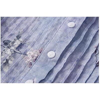 トップス シャツ ブラウス 半袖 綿 花柄 折り襟 オーバー レディース ボタン留め ゆったりとしたシルエット